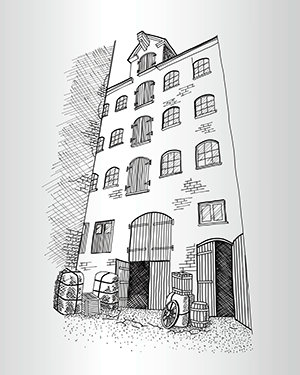 The landmark Neoclassical townhouse at Nytorv 11-13, today home to the Church of Scientology, was originally constructed in 1796 by merchant and brewer Jens Lauritzen. One year earlier, fire had consumed the Nytorv/Gammeltorv district, and city planning mandated the building’s distinctive “broken corner” façade to allow long-ladder fire engines to navigate the city’s narrow streets.